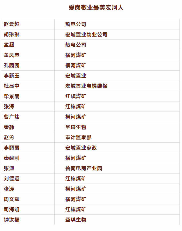 【公示】“愛崗敬業(yè)最美宏河人“推薦評選結(jié)果出爐啦! |