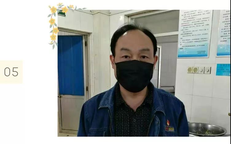 生活科科長 張宜華: 疫情期間連續(xù)駐礦13天,特殊時期保證食物新鮮無污染是我們的責任,餐廳的任何環(huán)節(jié)必須佩戴口罩、手套、頭套,讓留值在礦的工友們放心食用、安心工作,后勤工作是基礎、更是關鍵,生活科在這關鍵時期必須全力接力抗疫防衛(wèi)戰(zhàn)。